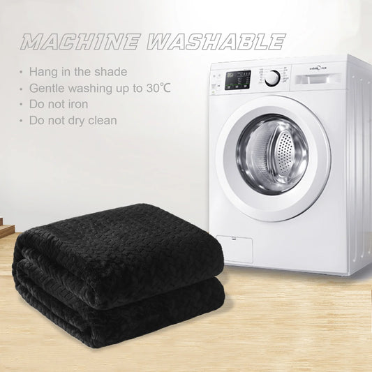 Large Flannel Fleece Throw Blanket, Jacquard Weave Leaves Pattern (50" X 70", Black)